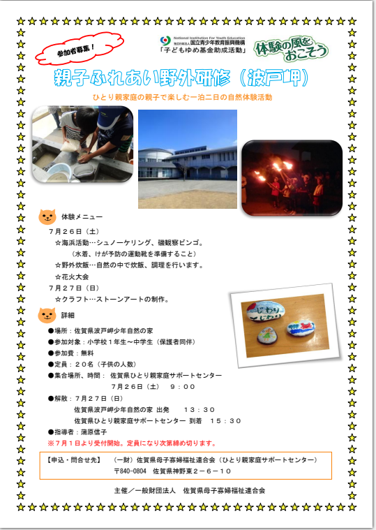 令和7年度親子ふれあい野外研修 参加者を募集いたします。