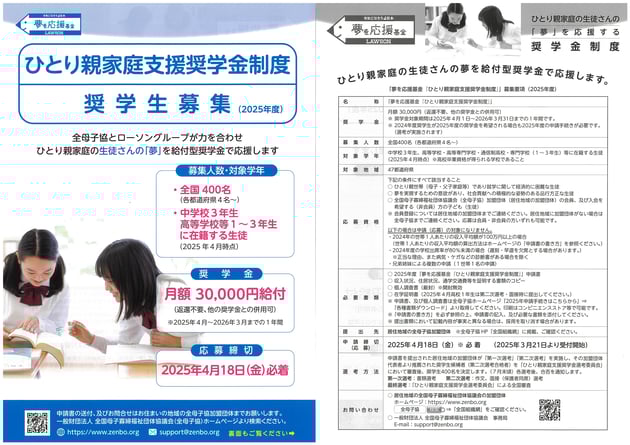 令和6年度全母子協とローソングループの奨学金は終了いたしました。